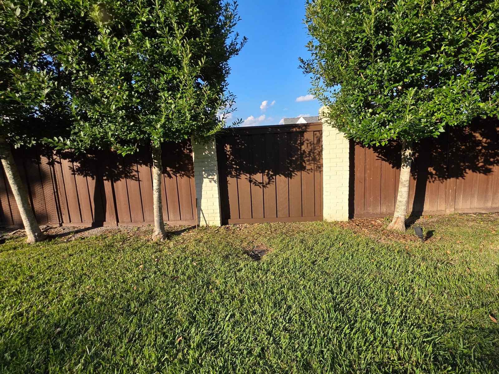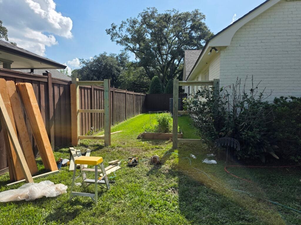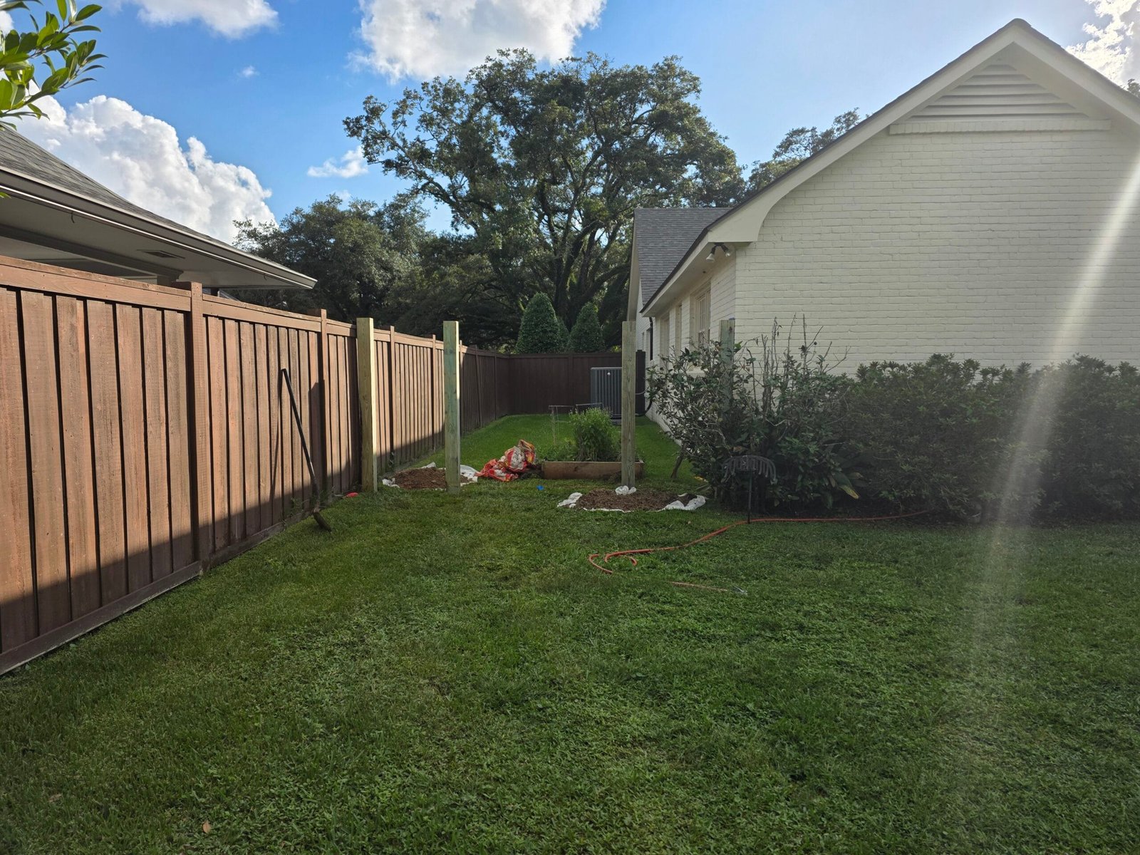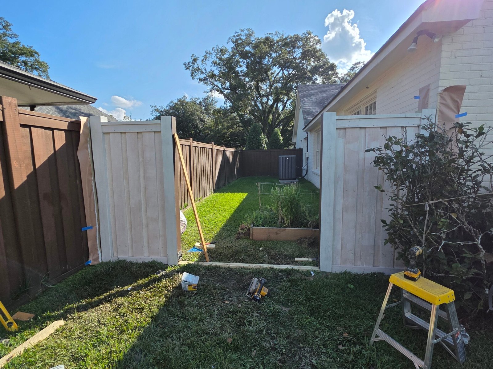 This custom wood fence was built using a board-over-board design, where each picket overlaps the next to create a continuous, solid appearance with no visible gaps. The layered pattern enhances privacy while adding depth and dimension to the structure. Constructed with pressure-treated wood and reinforced posts for long-term durability, this fence combines functionality and style. The project was completed with clean lines, precise alignment, and a professional finish that complements the surrounding property.